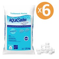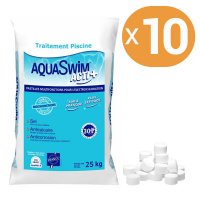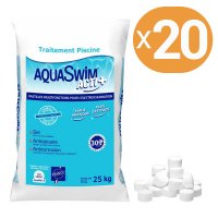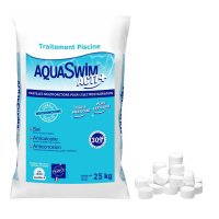 Sale per piscina AquaSwim Acti+ è un sale multifunzione di alta qualità in pastiglie da 20 gr, venduto in sacchi da 25 kg, appositamente formulato per il trattamento dell'acqua di piscine con impianto elettrolisi.