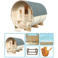 La sauna finlandese da esterno MINERVA si contraddistingue per la sua forma a botte dal design rustico, tipica dei paesi nord europei.