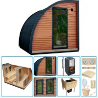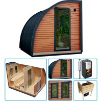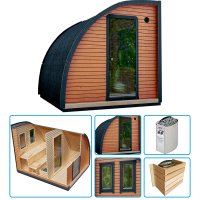 Proponiamo la sauna NOMAD in diversi kit, solo struttura, Base e kit Pro con accessori e con riscaldamento con stufa elettrica o a legna per soddisfare ogni richiesta.