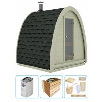 La sauna finlandese tradizionale da esterno SANDER si presenta con un design che ricorda gli igloo del nord.