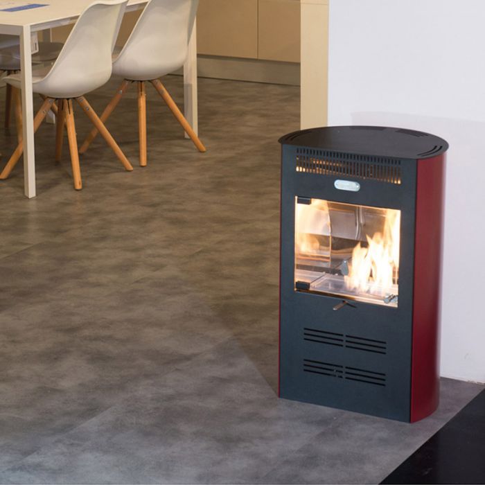 Questo modello di stufa è dotato di telecomando che permette di regolare la ventilazione (fino a 3 velocità) e di ottenere così un calore distribuito uniformemente in tutta la stanza.