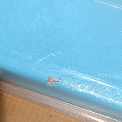 Il prodotto è stato danneggiato durante il trasporto e presenta pertanto dei graffi e delle rotture lungo i lati della tavola ed in particolare sulla parte laterale.