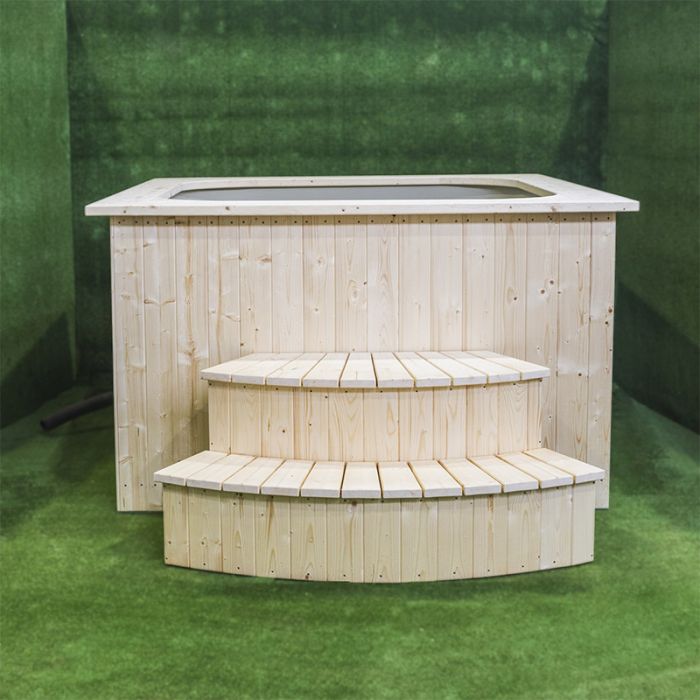 Baldr è realizzata con una struttura in legno di abete del nord, mentre l'interno vasca è in polipropilene, un materiale resistente, igienico e semplice da pulire.