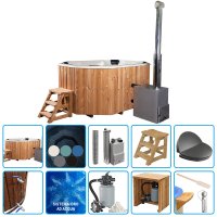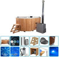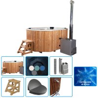 Il suo interno è realizzato con vetroresina, un materiale pregiato noto per la sua robustezza e facilità di manutenzione. Mentre l'elegante rivestimento esterno è realizzato in legno thermowood, dalle tonalità vivaci e trattato per resistere a muffe e funghi.